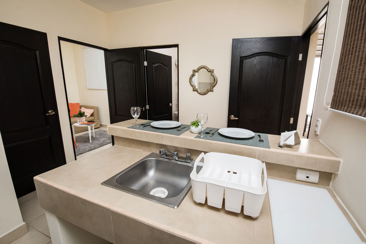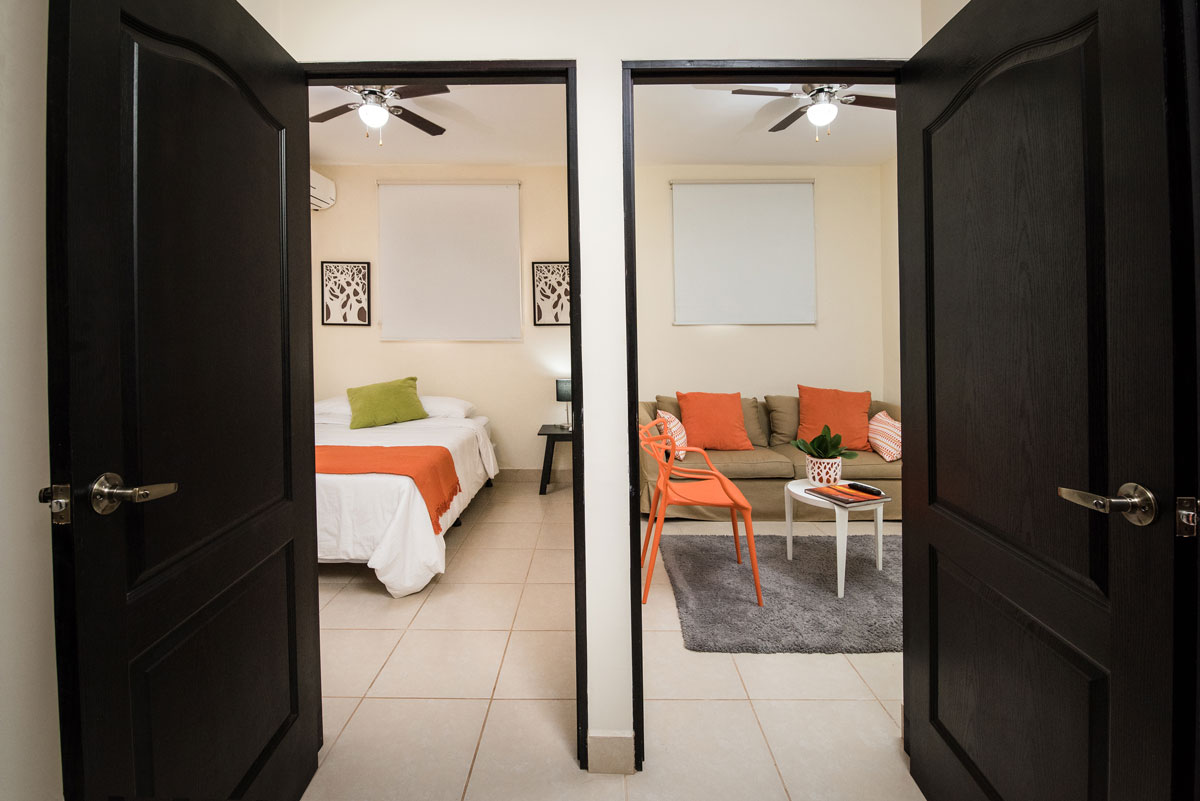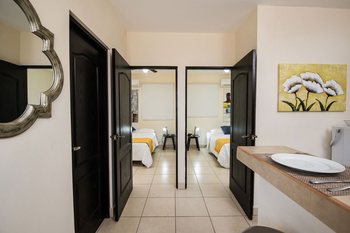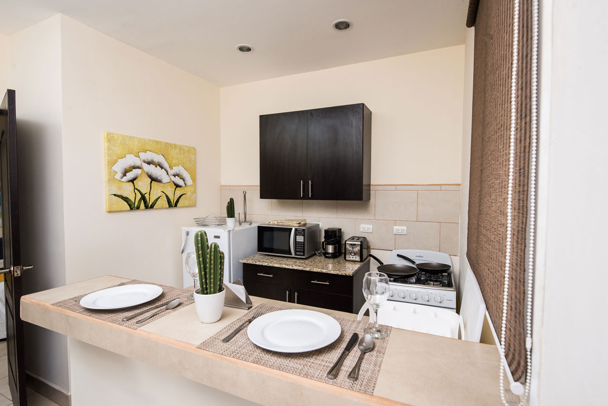 Todos los apartamentos incluyen cocina equipada, refrigeradora, aire acondicionado, TV, microondas, cafetera, tostadora y utensilios.